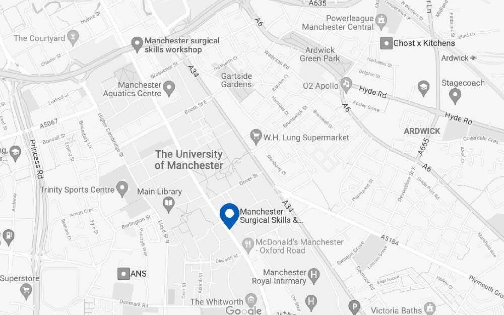 The MSSSC is centrally located within the city of Manchester and within the University of Manchester’s main campus. It is easily accessible by public transport, being a 5-minute drive from Manchester Piccadilly railway station and 20 minutes from Manchester International Airport. If travelling by car there is a NCP multi-story car park located nearby on Grafton Street, charges are applicable. There are hotels to suit every budget within walking distance or a short taxi ride.